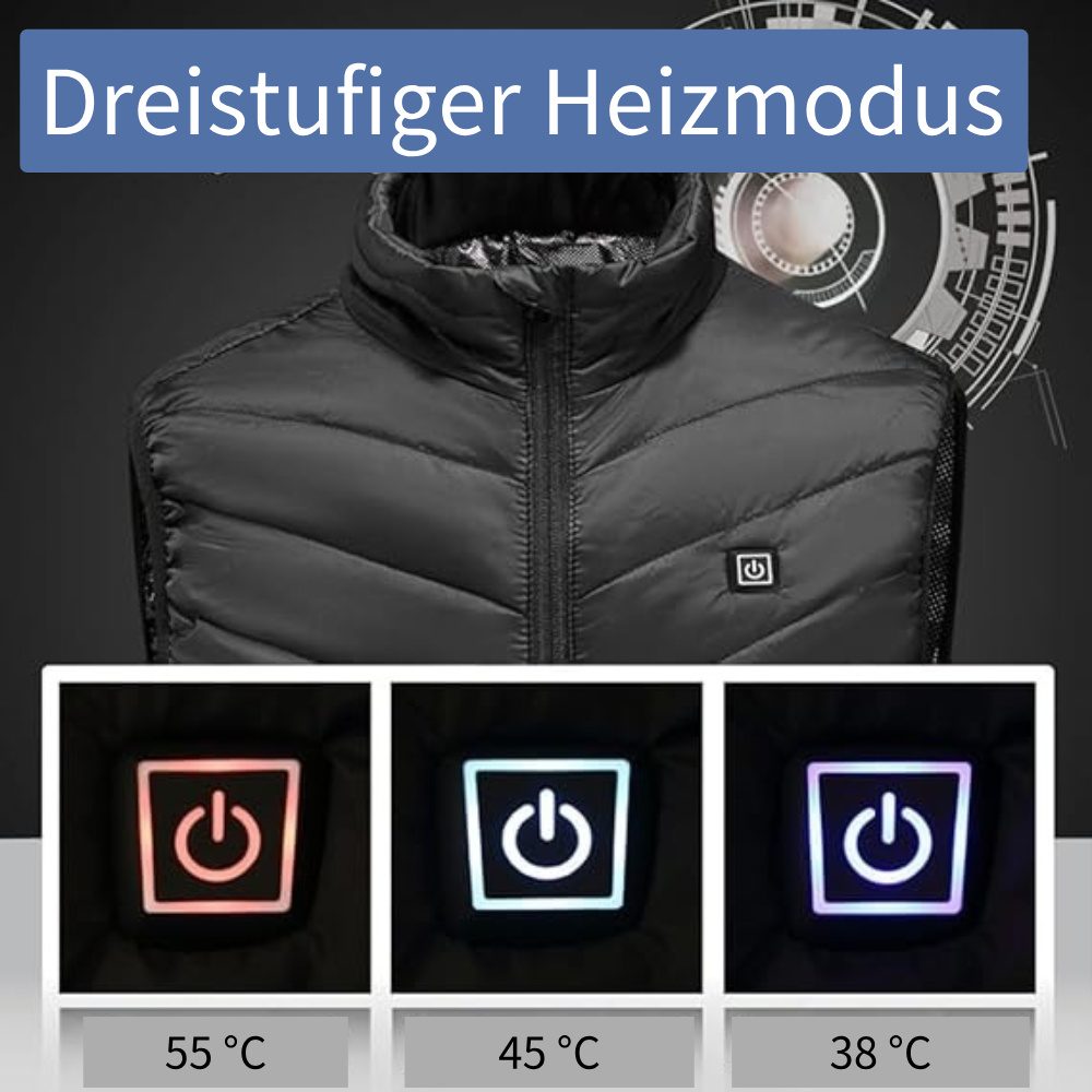 Dank der 9 Heizbereiche im Nacken-, Rücken- und Bauchbereich genießt du langanhaltende Wärme und höchsten Tragekomfort – ohne dicke Kleidung, immer angenehm warm wie im Frühling.