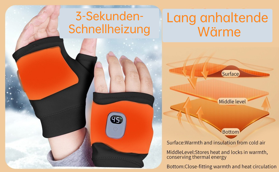 Beheizte Hände: 4–8 Std. Wärme an kalten Tagen.